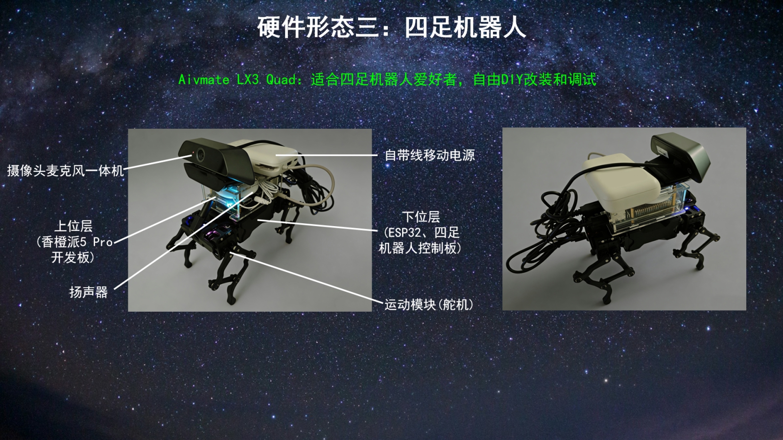 · 枫云AI虚拟伙伴Linux版v3.0(Aivmate LX3)开源发布,一款支持迷你小盒子/四轮机器人/四足机器人三形态的AI伙伴,旨在为Linux用户打造一个功能丰富、高度可定制的虚拟伙伴。通过整合多种人工智能技术,实现声纹识别语音交互、多模态图像识别、多Agent智能体、Live2D/MMD 3D/VRM 3D角色展示、主动感知对话、机器人控制等功能。