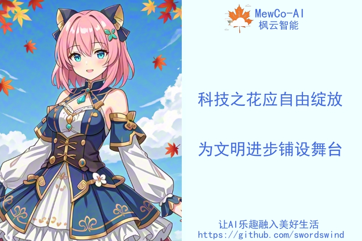 · MewCo-AI精心打造的枫云平台,是一个正在积极推进的大型AI公益项目。项目组推出了业界领先且广受用户欢迎的枫云AI虚拟伙伴探索版,并开源了Web版和Linux版。与开源社区积极合作,聚焦于普惠新型AI技术并提供便捷的使用方式,使用户专注于享受AI的乐趣。