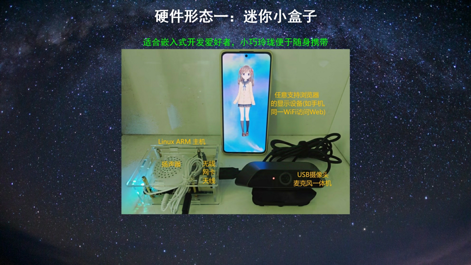 · 迷你小盒子/机器人小车双形态2D/3D AI伙伴。一款可随身携带且支持本地运行的AI伙伴(AI Virtual Mate Linux),旨在为Linux用户打造一个功能丰富、高度可定制的虚拟伙伴。通过整合多种人工智能技术,实现实时拟真语音交互、多模态图像识别、多Agent智能体、Live2D/MMD 3D角色展示、主动感知对话、机器人控制等功能。